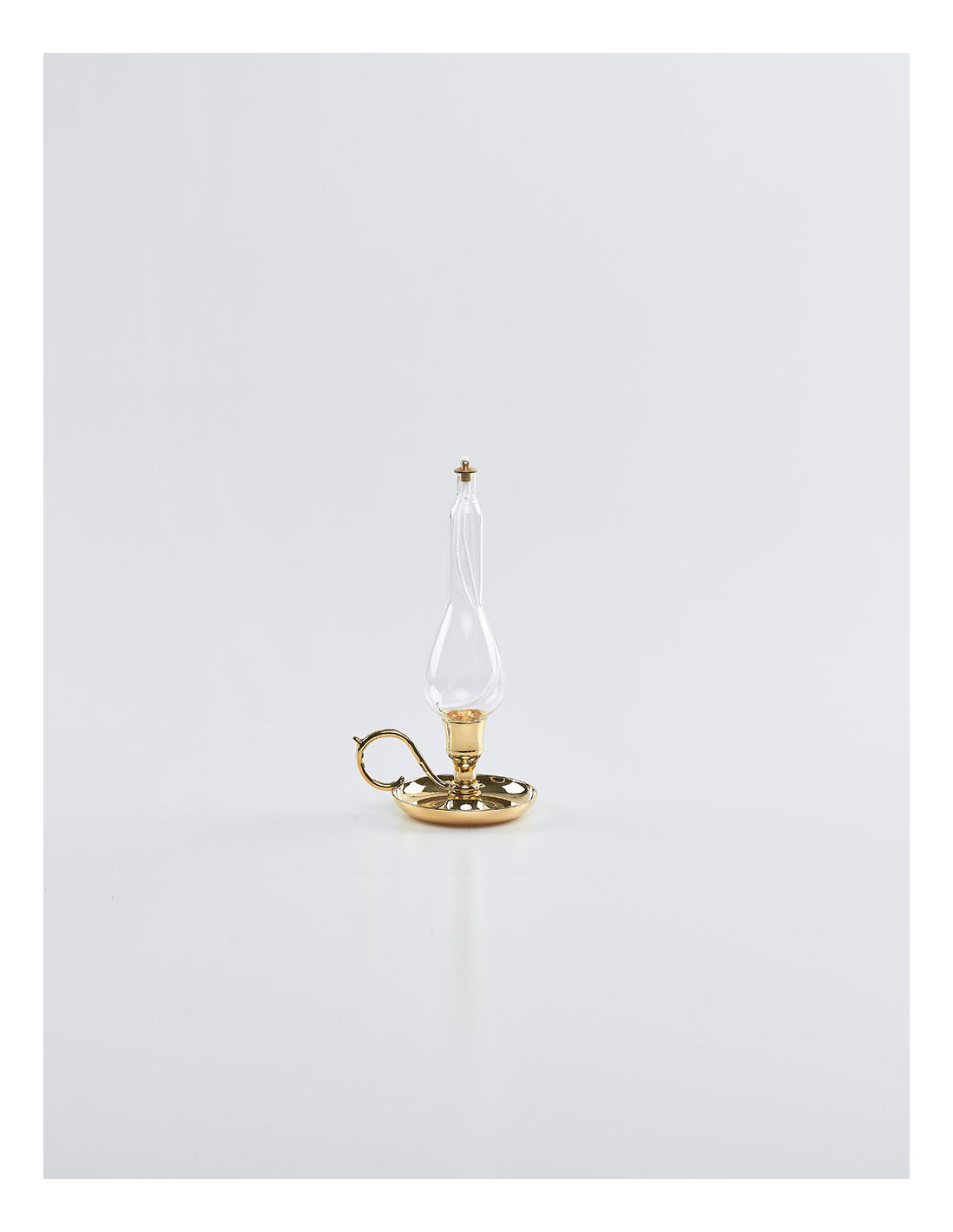 Lume per chiesa modello Bugia Olandese realizzata in vetro trasparente e base in ottone.