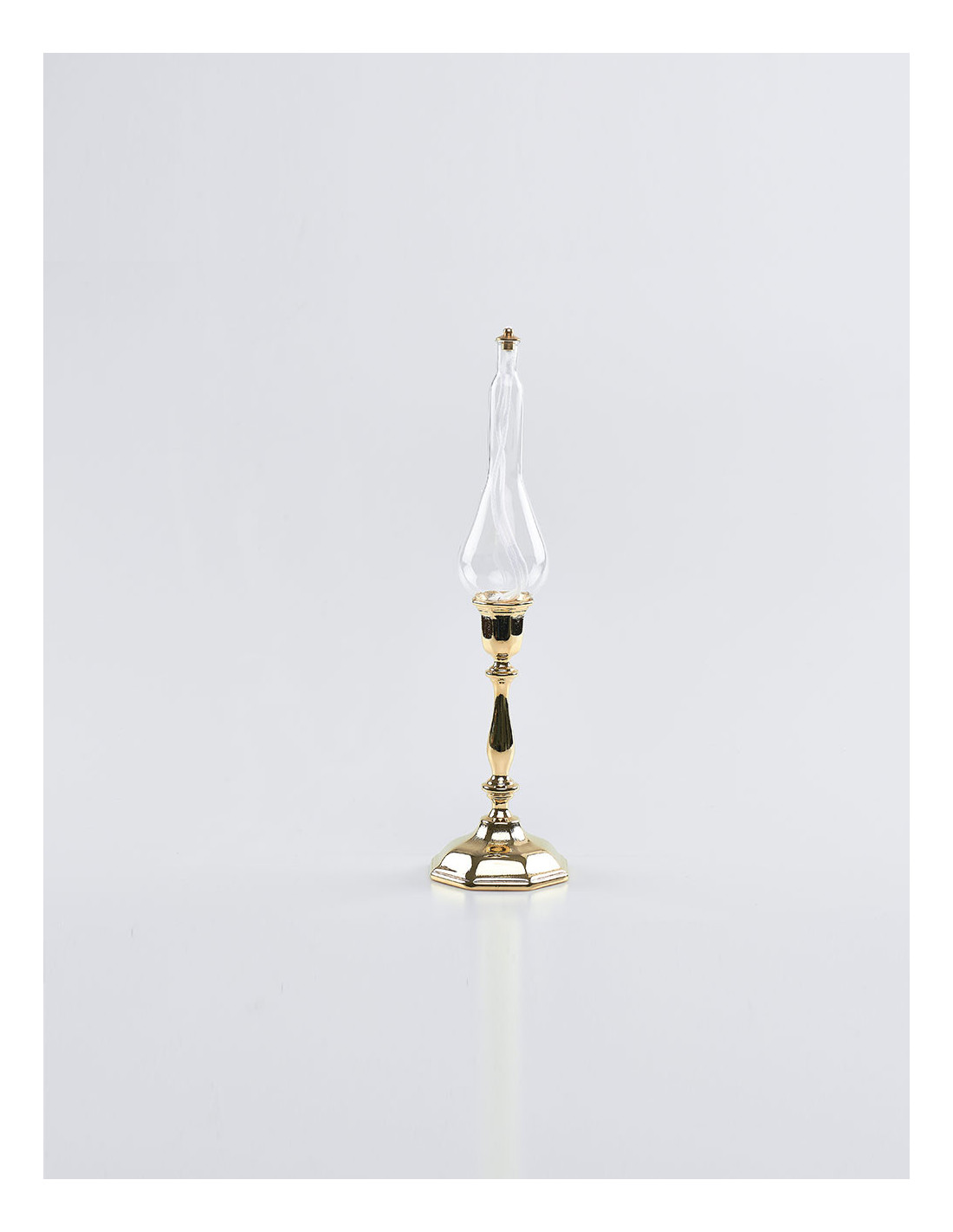 Lume per chiesa modello ottagonale realizzata in vetro trasparente e base in ottone.