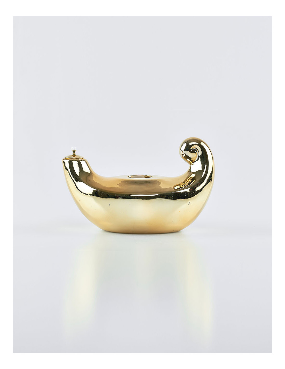 Questa lampada in porcellana dorata con inclusi stoppino e gigler. La caratteristica principale di questa lucerna è il design molto morbido e delicato ideale per le cerimonie di tutti i giorni ma anche le grandi cerimonie.