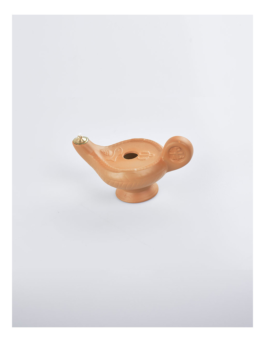 Questa lampada in porcellana color terracotta con inclusi stoppino e gigler. La caratteristica principale di questa lucerna è il design molto morbido e delicato ideale per le cerimonie di tutti i giorni ma anche le grandi cerimonie.