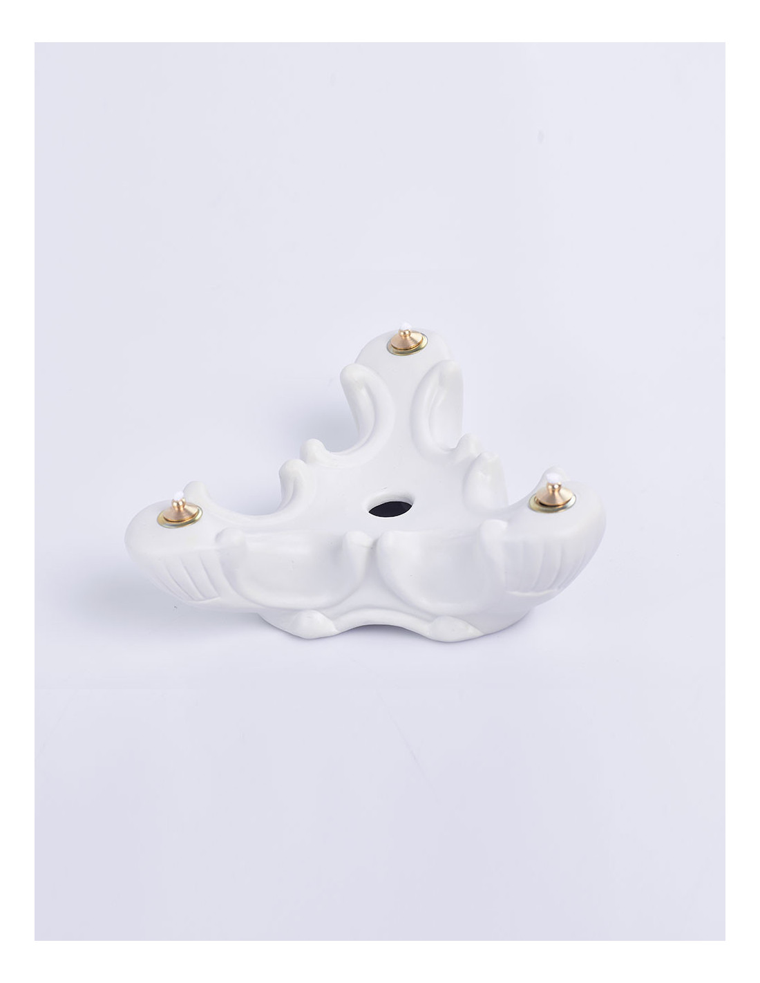 Questa lampada in porcellana color avorio con inclusi stoppino e gigler. La caratteristica principale di questa lucerna è la presenza di tre lumi dal design molto legante.