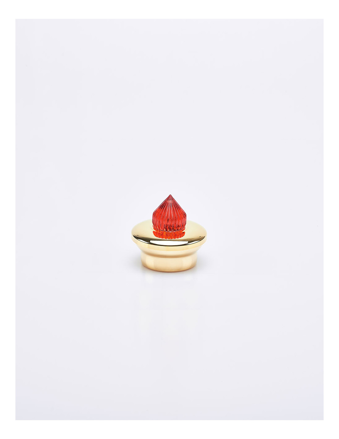 Lume per chiesa elettronico con led rosso e base dorata.