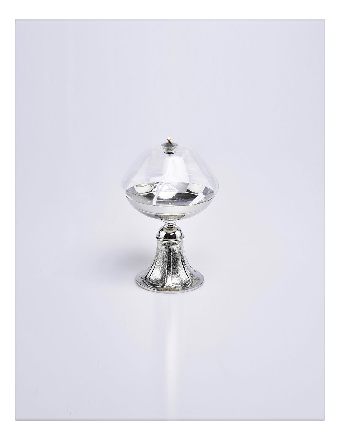 Lampada in vetro con base in nikel per cera liquida altezza 14 cm art. 1488